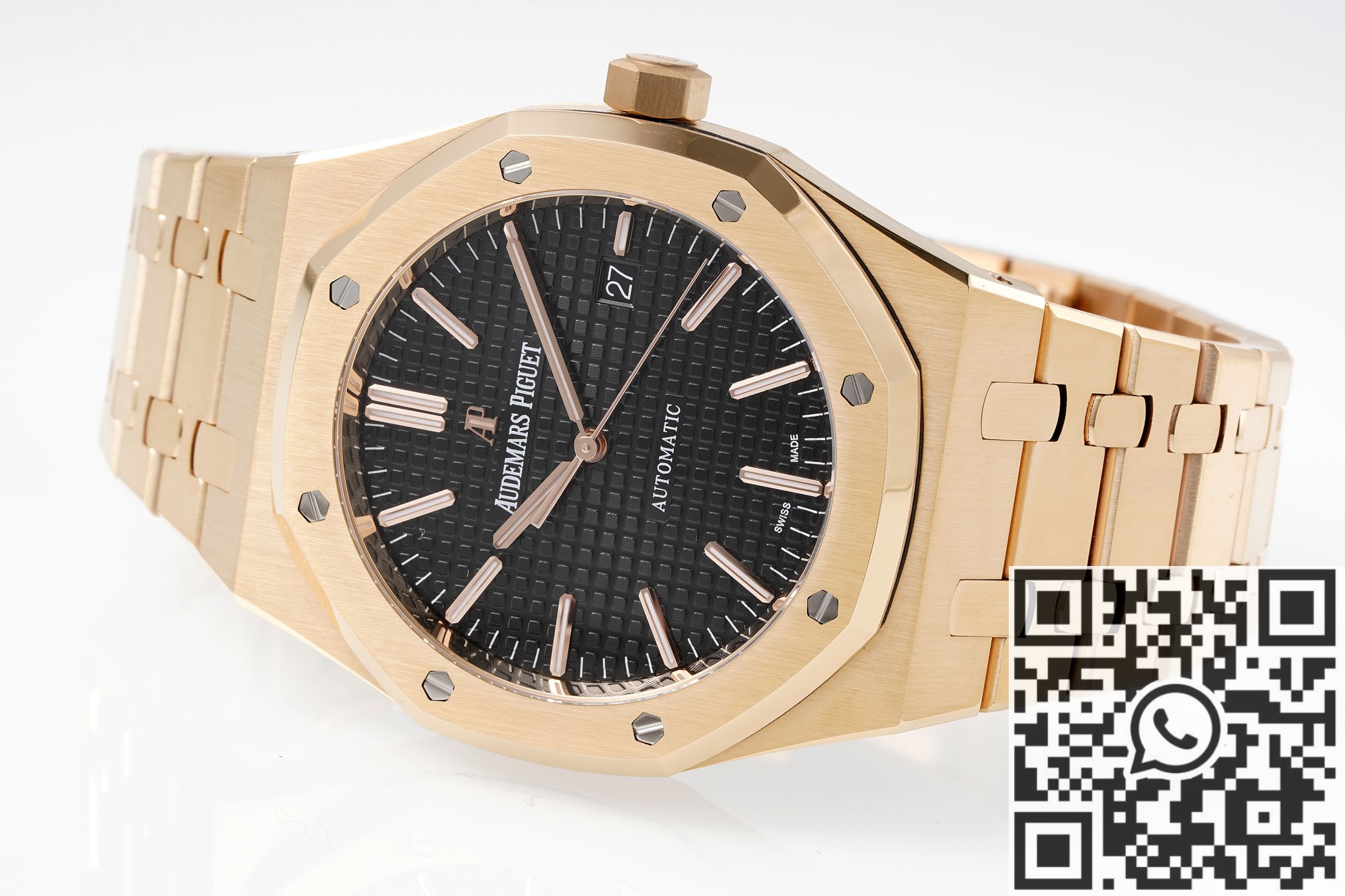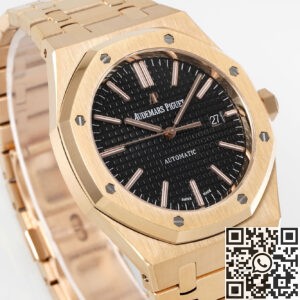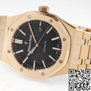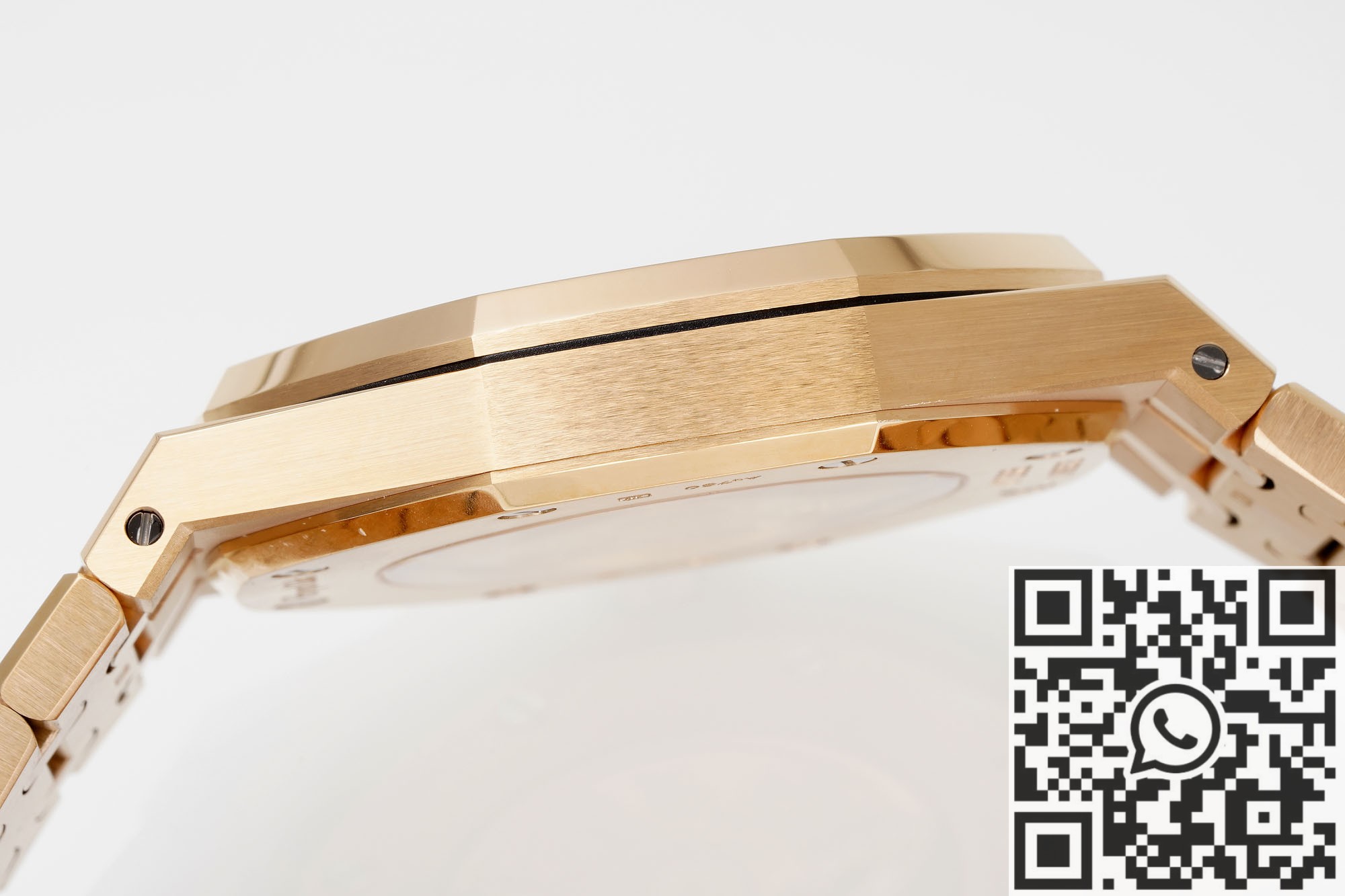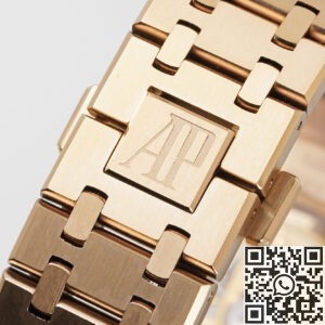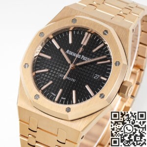 Introducing the highly anticipated APS Factory replica of the Audemars Piguet Royal Oak series rose gold watch, equipped with the powerful custom-made Cal.3120 automatic movement. Here are the prominent features of this remarkable timepiece: