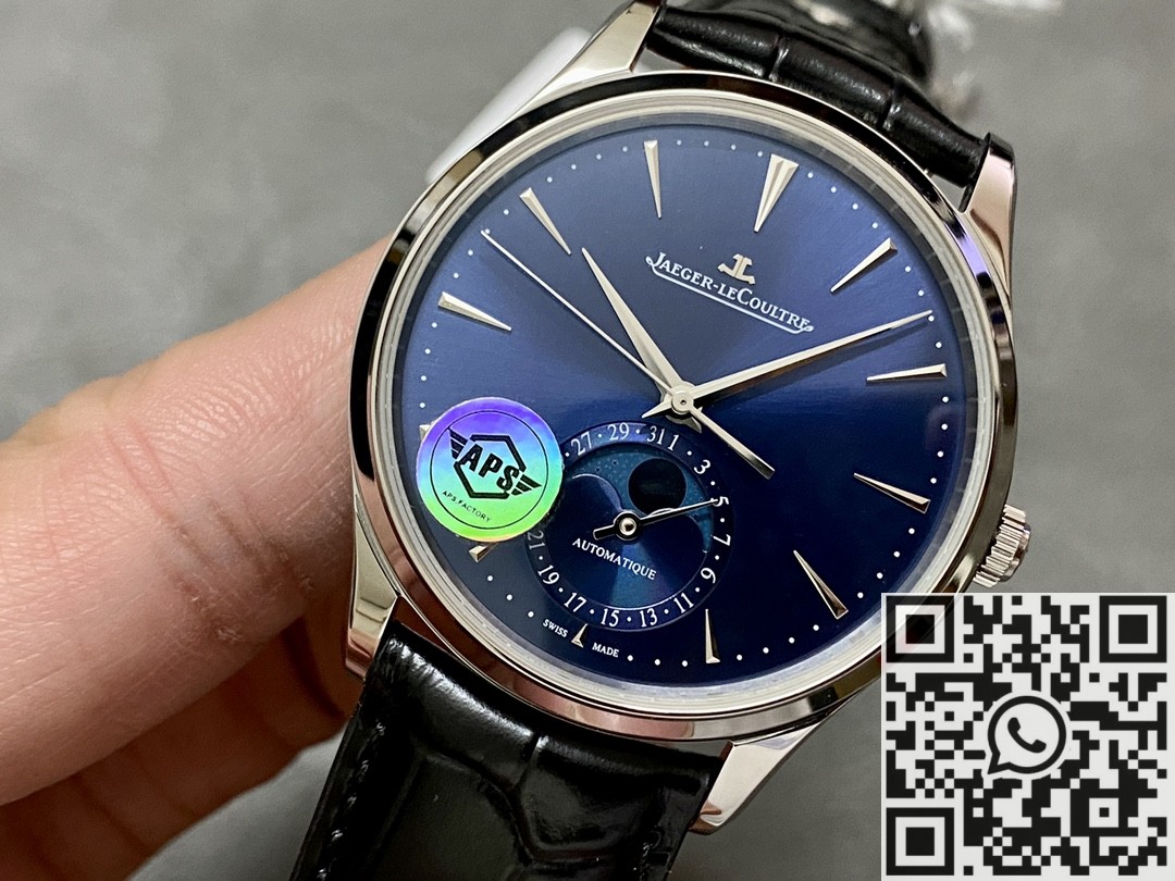 Introducing the highly anticipated release from APS Factory, the replica Jaeger-LeCoultre Master Moon Phase watch featuring the Cal.925 integrated movement. With extensive enhancements, this new version showcases significantly improved stability. The updated moon phase disc sets apart the new model from its predecessor. Additionally, the bracelet has been upgraded to the latest quick-release version, and the buckle has been redesigned with increased curvature for enhanced wearing comfort. The dial now displays a metal logo, elevating the overall tactile experience. Discover and appreciate the impeccable craftsmanship of this captivating timepiece.