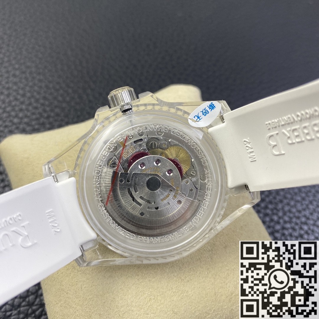 Imported Thai rubber, the best adhesive tape in the market, finely polished buckle, invincible texture, acrylic transparent case follows the original structure, redesigned front and rear pot cover mirrors, highlighting the essence of perspective, r-shaped springs and curved inner teeth bite each other, Intersecting with the outer teeth of the bezel, pursuing the beauty of details, the super 3135 blue hairspring movement can be seen through the bottom cover at a glance, creating the ultimate luxury with ingenuity!