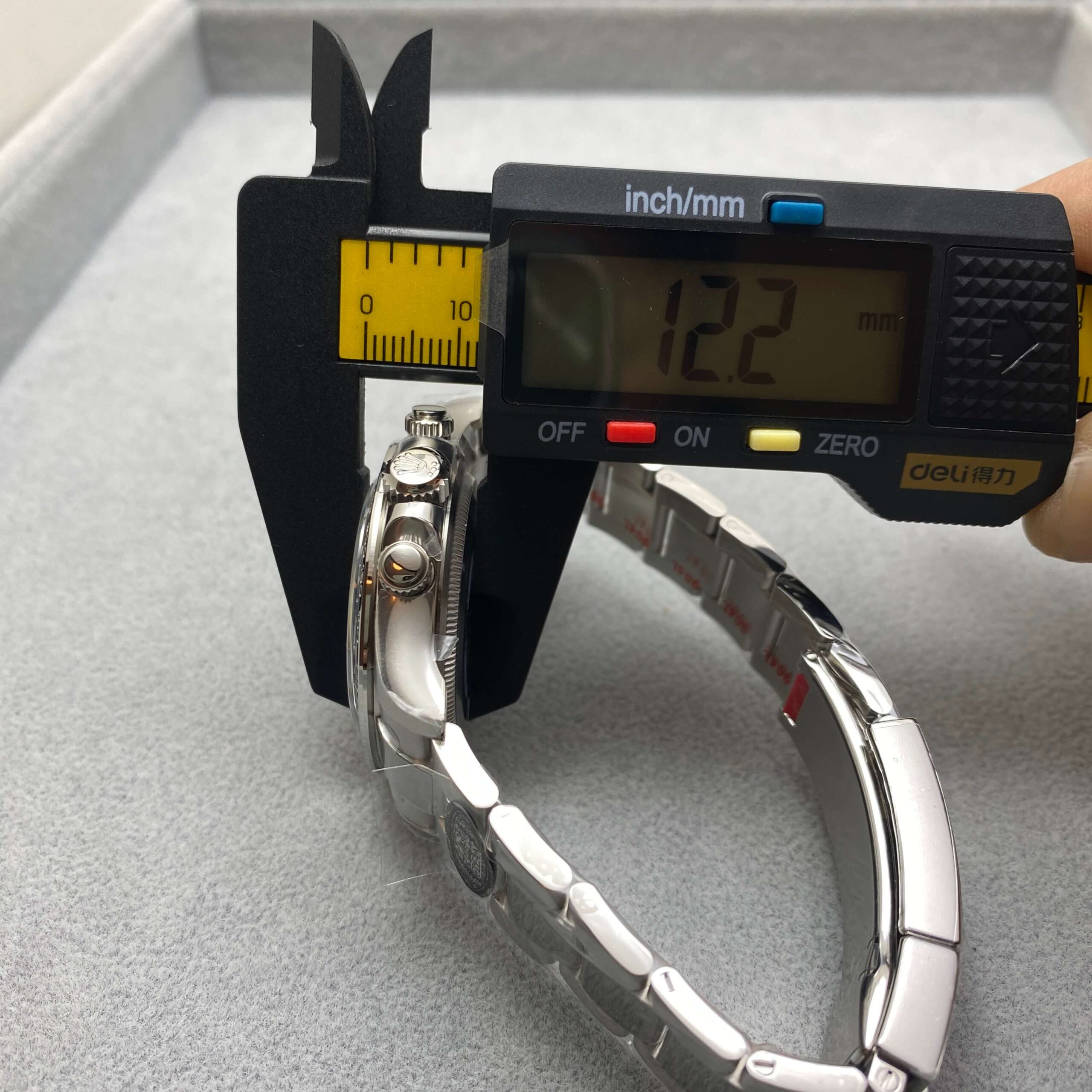 Indulge in the exceptional craftsmanship of the Clean Factory’s Rolex Daytona replica, featuring a 904L stainless steel construction, 4131 movement, AR bracelet, clean dial/unique edition, clean ceramic bezel, and polished factory hands, with a thickness of approximately 12.2-12.3mm.