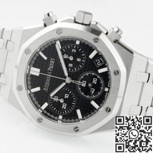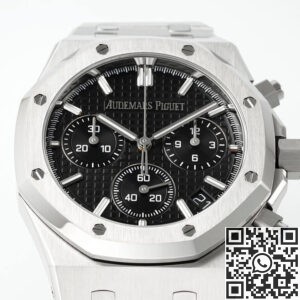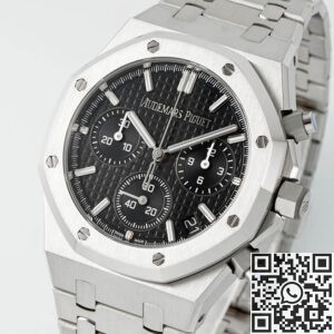 The Audemars Piguet Royal Oak Chronograph 26240ST.OO.1320ST.06 is a masterclass in modern sports watch design. With its sleek black “Grande Tapisserie” dial, iconic octagonal bezel, and integrated stainless steel bracelet, this timepiece is bold, timeless, and effortlessly stylish.