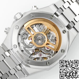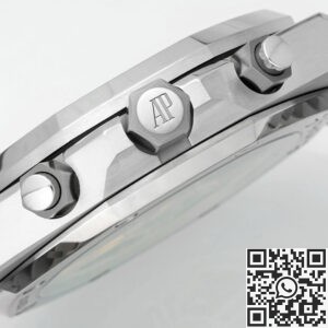 This model runs on a modified Asian 7750 chronograph movement, offering working chronograph functions and simulated flyback behavior, mimicking AP’s in-house Caliber 4401.