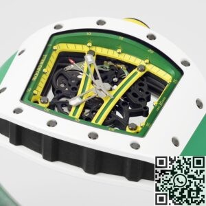 The ZF Factory Fake Richard Mille RM061 White Ceramics with Green Strap is more than just a watch—it’s a statement of individuality and style. With its innovative materials, high-performance movement, and vibrant design, this timepiece is perfect for those who want to make a bold impression.