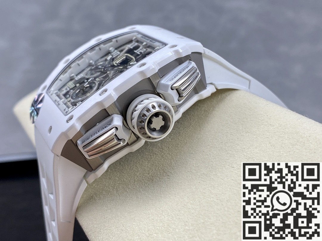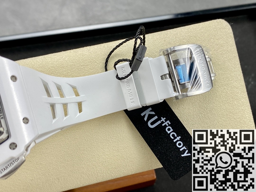 KU factory Richard Mille best fake RM011-03 white ceramic bezel white rubber strap