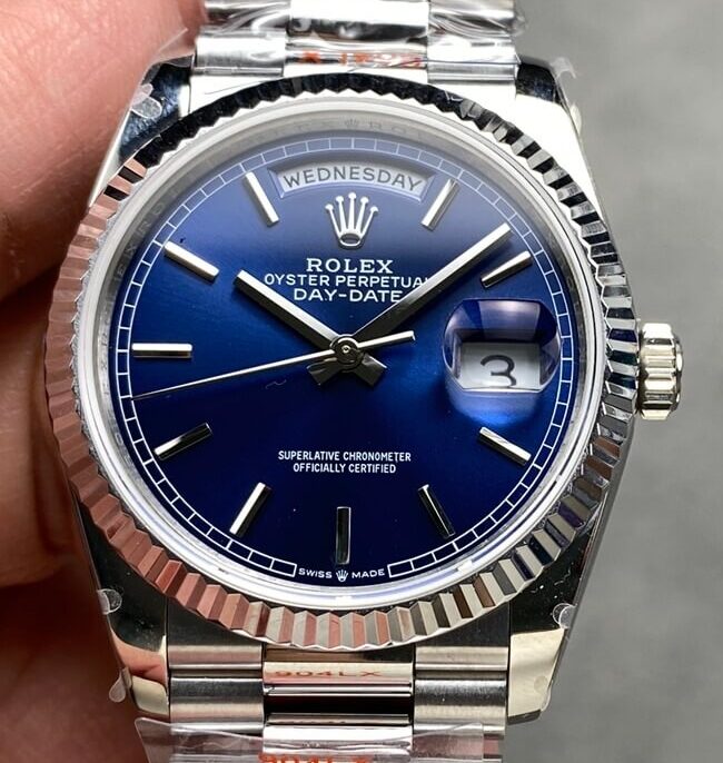 Conclusion: The Q Factory Fake Rolex Day-Date M128239 Blue Dial 36mm Watch is a perfect homage to classic design. Whether as a collector’s item or for daily wear, this watch offers an unparalleled experience to its wearer. Choosing this watch is not just about acquiring a beautiful timepiece; it’s about embracing a lifestyle.