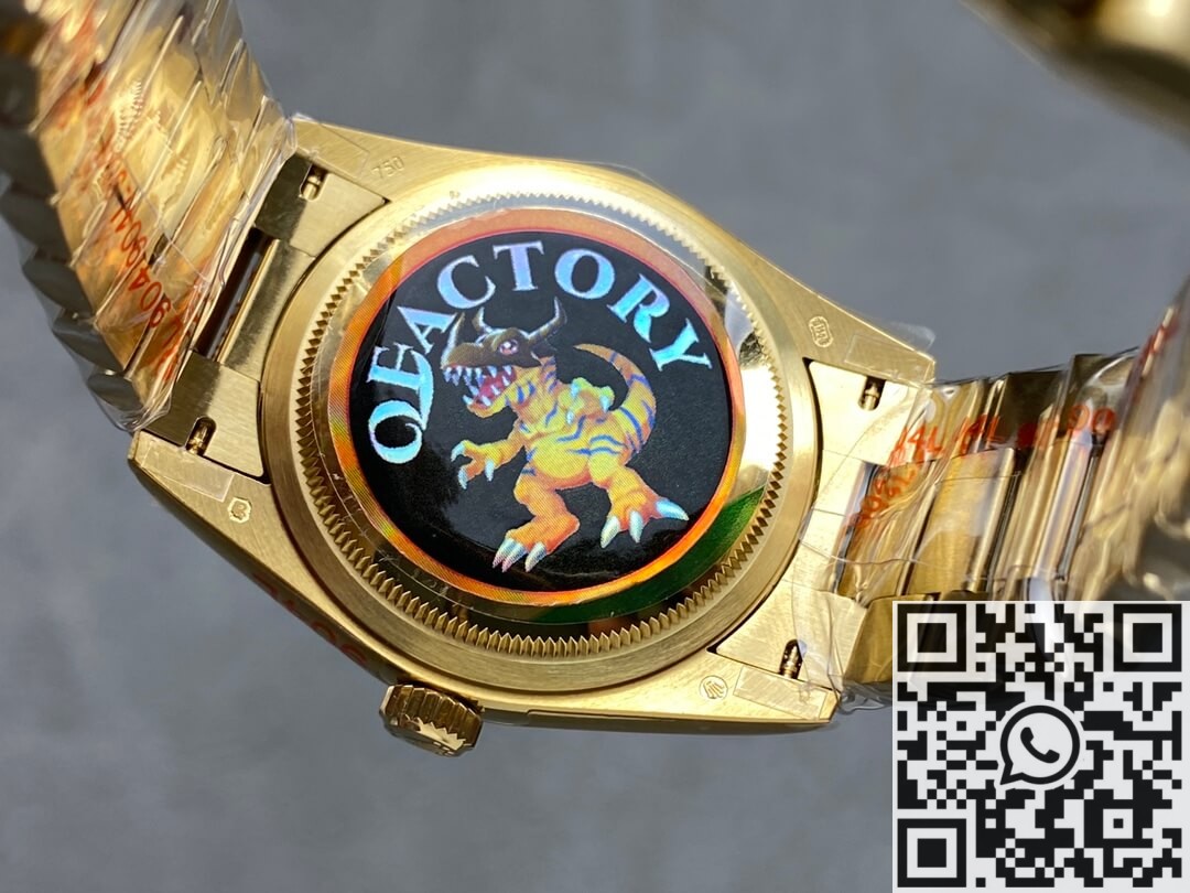 The Q Factory Rolex Day-Date M128238-0008 features a classic 36mm case diameter, making it suitable for a variety of wrist sizes. Crafted from 18K yellow gold, the watch radiates a captivating brilliance, showcasing an extraordinary sense of luxury. The dial is adorned with diamond hour markers, each carefully selected and set to ensure dazzling brilliance.