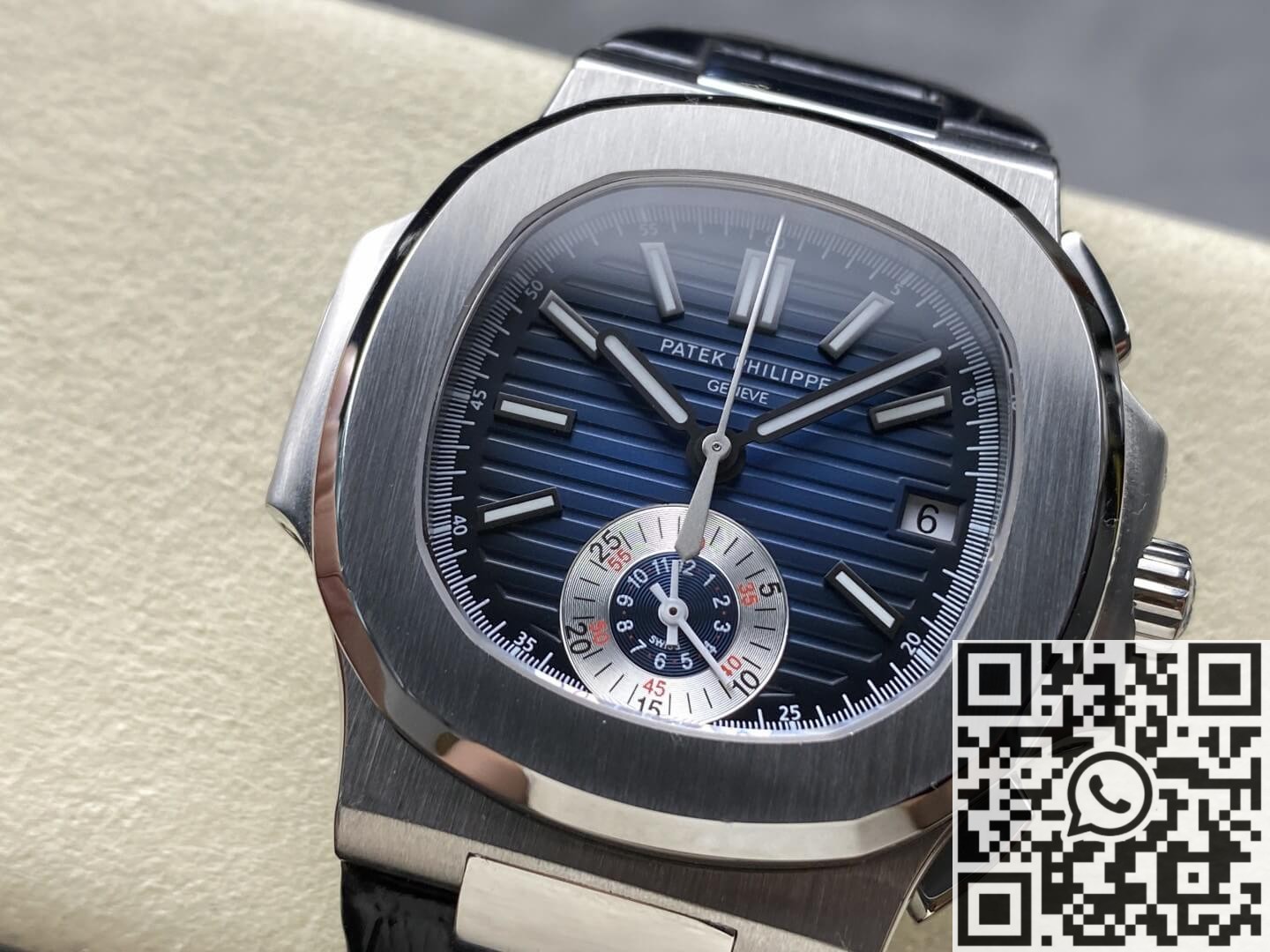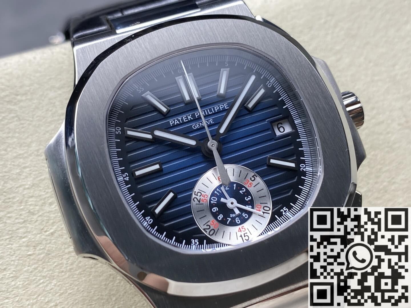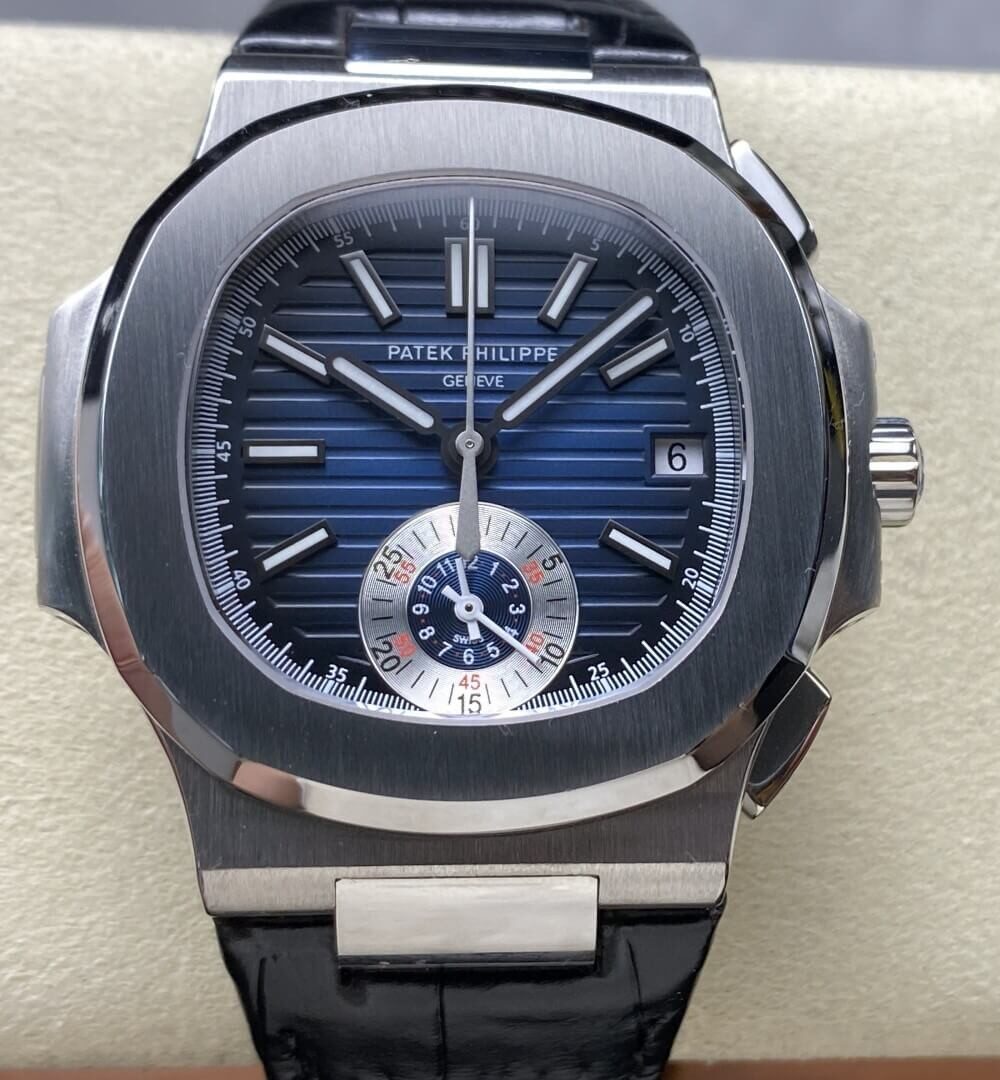 The black-blue dial of the 3K Factory Nautilus 5980/1A-014 V2 is not just a visual triumph—it’s a functional masterpiece. At 6 o’clock, a co-axial sub-dial integrates the 60-minute and 12-hour chronograph counters, a hallmark of the Nautilus 5980’s flyback chronograph design. The V2 edition introduces a fully functional small seconds hand, a significant upgrade from earlier replicas where this feature was purely decorative. This enhancement brings the replica closer to the authentic Patek Philippe experience, blending aesthetics with utility.