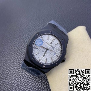 Experience the exceptional craftsmanship of the ZF Factory Replica Audemars Piguet Royal Oak 15400 DLC Version White Dial watch. This remarkable timepiece showcases meticulous attention to detail and precision engineering.